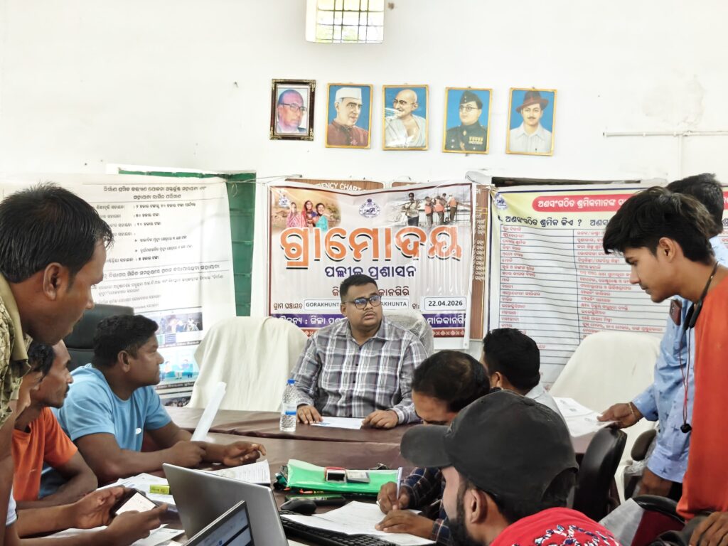 ଜିଲ୍ଲାର ଶ୍ରମିକମାନଙ୍କୁ ସାମାଜିକ ସୁରକ୍ଷା ଜାଲରେ ବାନ୍ଧିବା ପାଇଁ ମାଲକାନଗିରି ଜିଲ୍ଲା ପ୍ରଶାସନ ଅତ୍ୟନ୍ତ ସକ୍ରିୟ ରହିଛି। ଏହି କ୍ରମରେ ଜିଲ୍ଲାପାଳ ପ୍ରଥମେଶ ଅରବିନ୍ଦ ରାଜଶିର୍କେ ଙ୍କ ପ୍ରତ୍ୟକ୍ଷ ମାର୍ଗଦର୍ଶନରେ ମାଲକାନଗିରି ବ୍ଲକ ଅନ୍ତର୍ଗତ ଗୋରାଖୁଣ୍ଟା ଗ୍ରାମ ପଞ୍ଚାୟତଠାରେ ଏକ ବିଶାଳ ସଚେତନତା ଓ ପଞ୍ଜିକରଣ ଶିବିର ସଫଳତାର ସହ ସମ୍ପନ୍ନ ହୋଇଯାଇଛି।